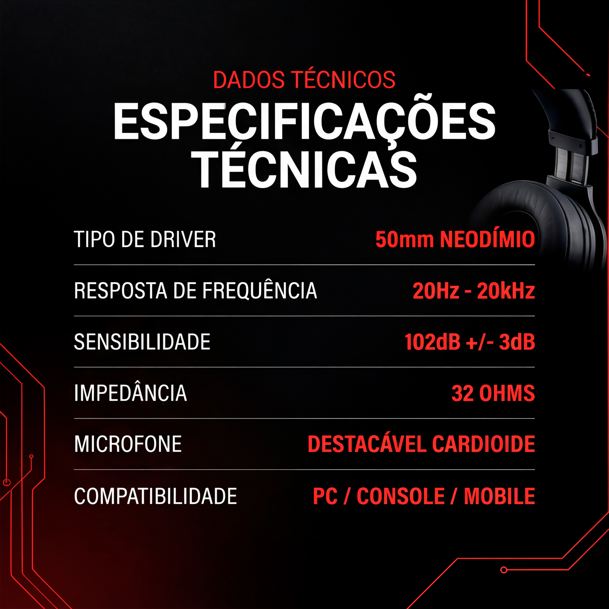 Projetado para máxima imersão, o Headset Blackout Gaming oferece áudio potente com drivers de 50mm em neodímio, garantindo graves profundos e excelente definição sonora. Seu microfone destacável com padrão cardioide proporciona comunicação clara e com redução de ruído.