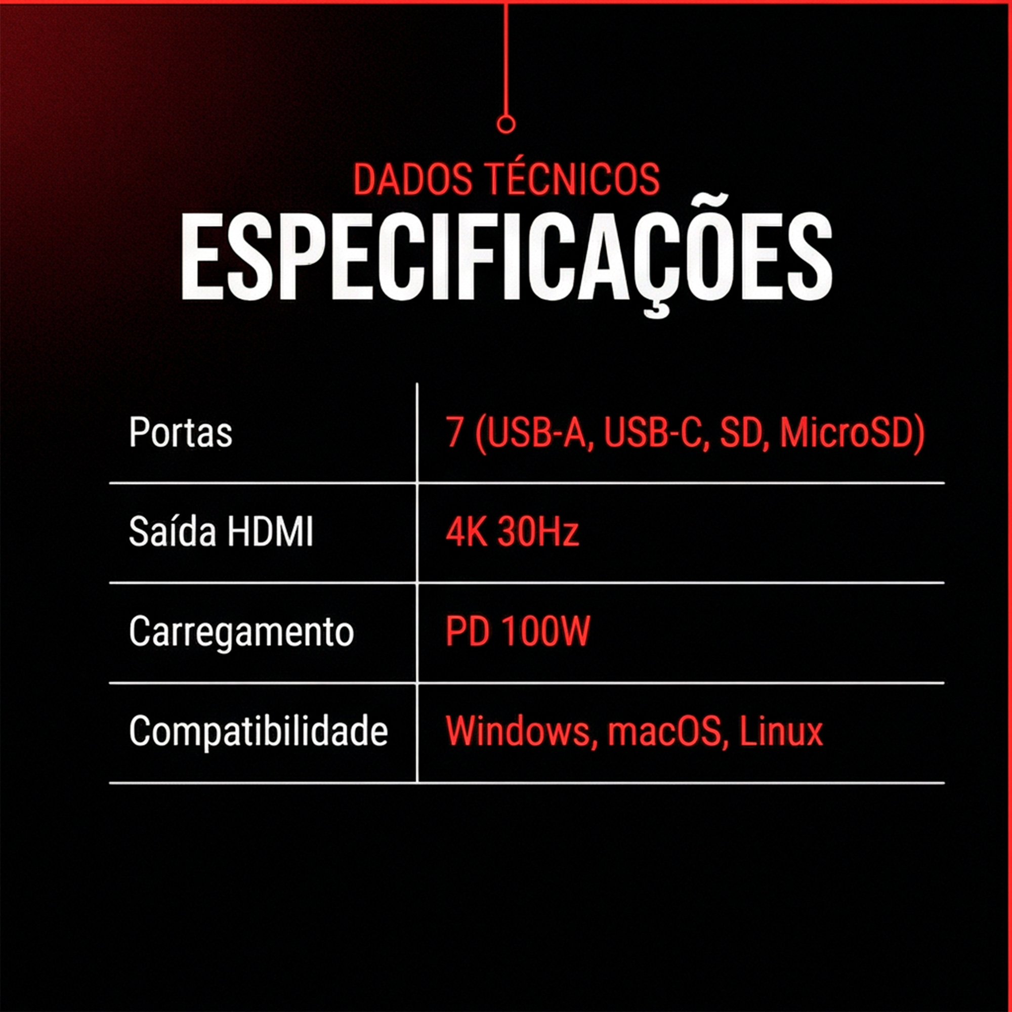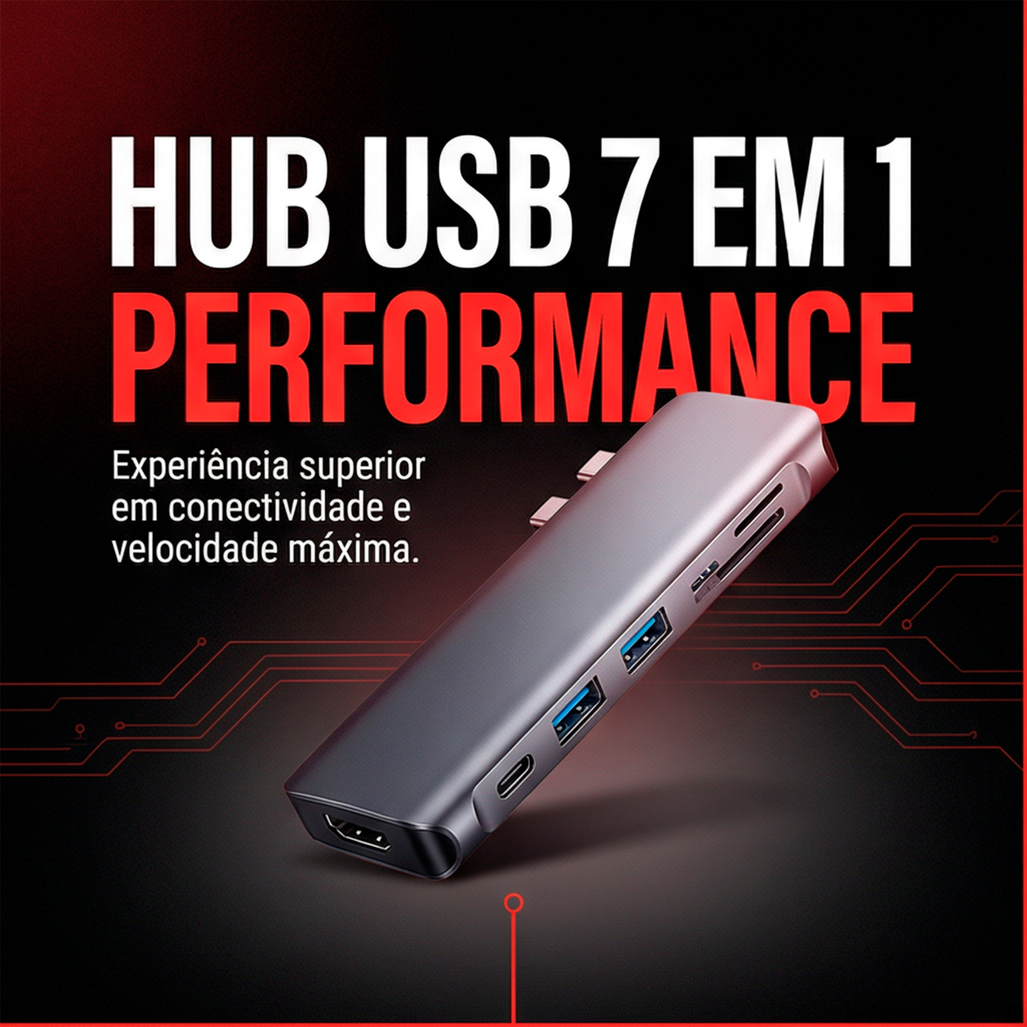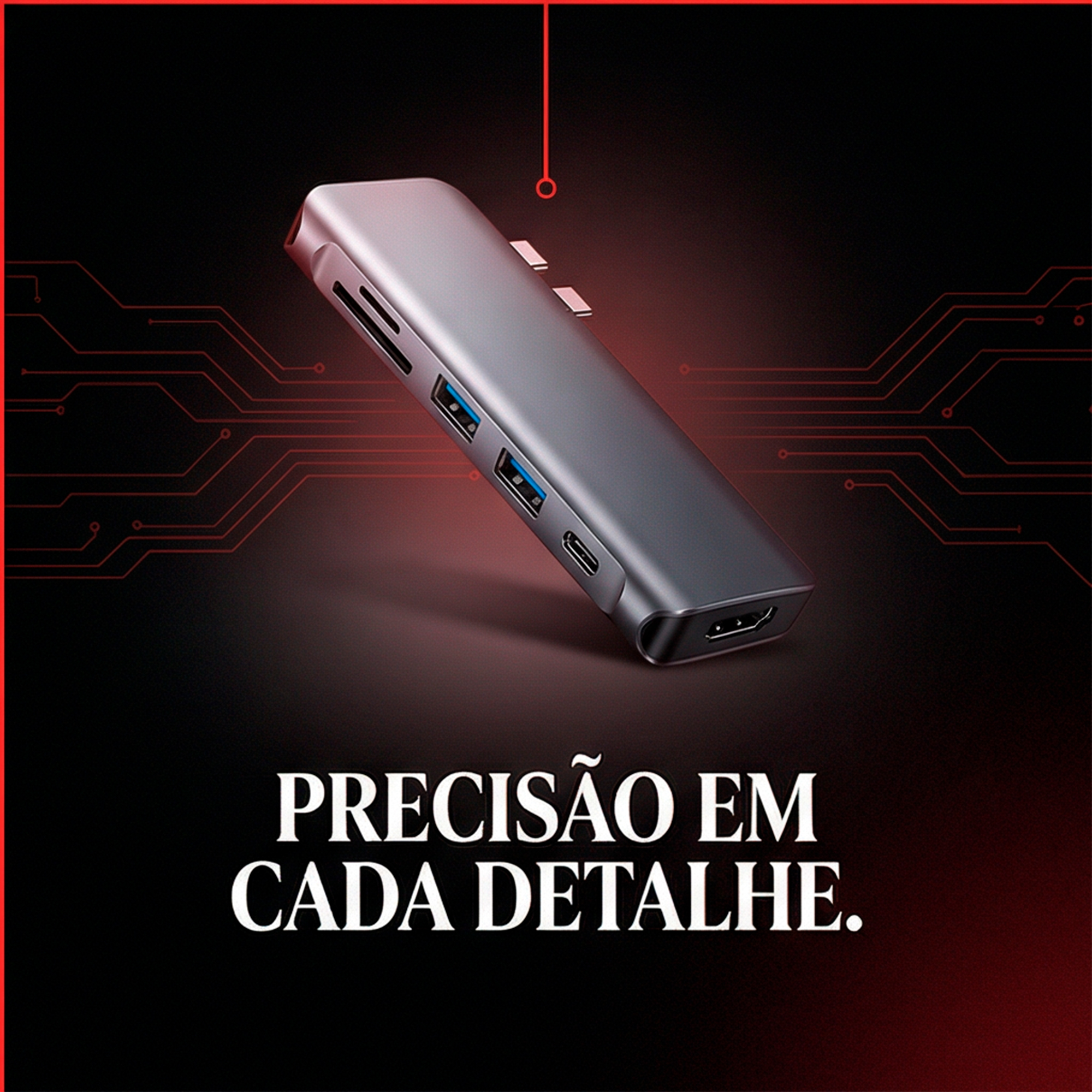 O Hub USB 7 em 1 foi desenvolvido para expandir a conectividade com máxima eficiência e desempenho. Compacto e elegante, oferece uma solução completa para quem precisa de mais portas e alta velocidade de transferência em um único dispositivo. Com suporte a transferência de dados de até 5Gbps, garante agilidade no envio de arquivos e estabilidade na conexão, evitando quedas ou interrupções.