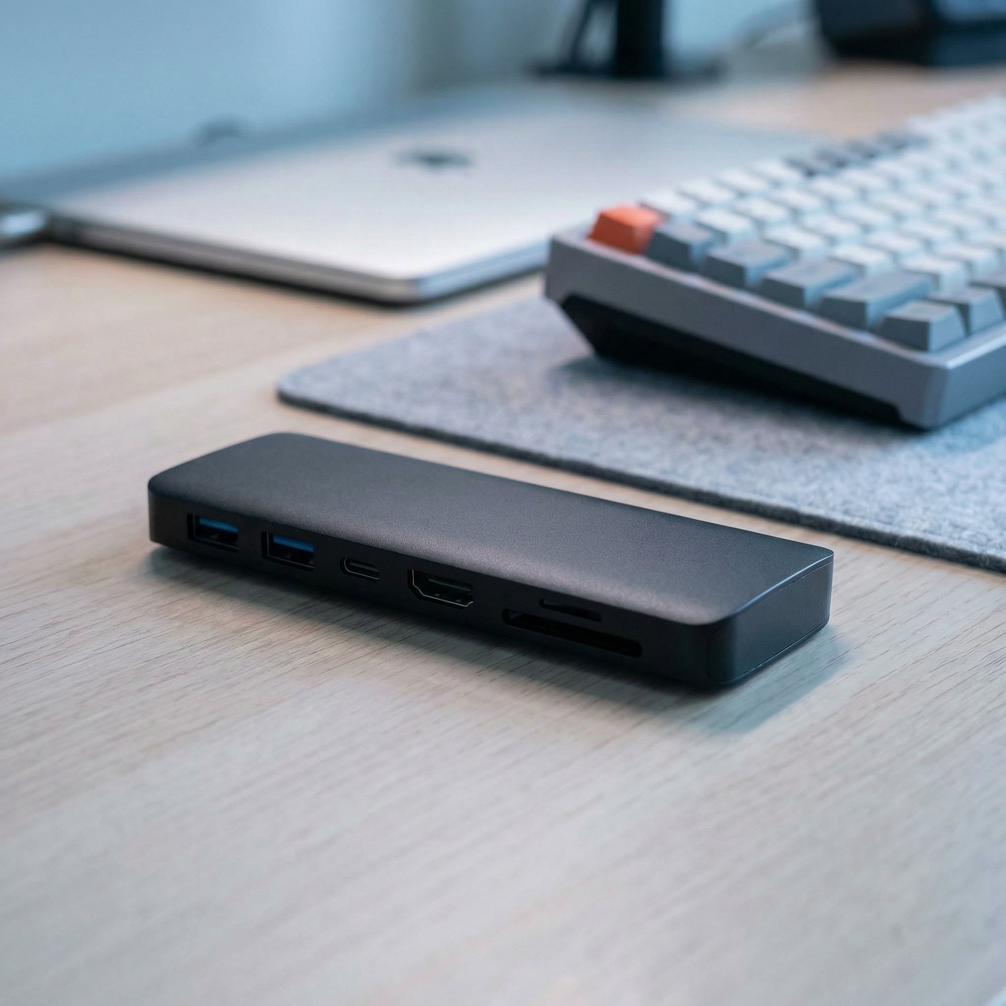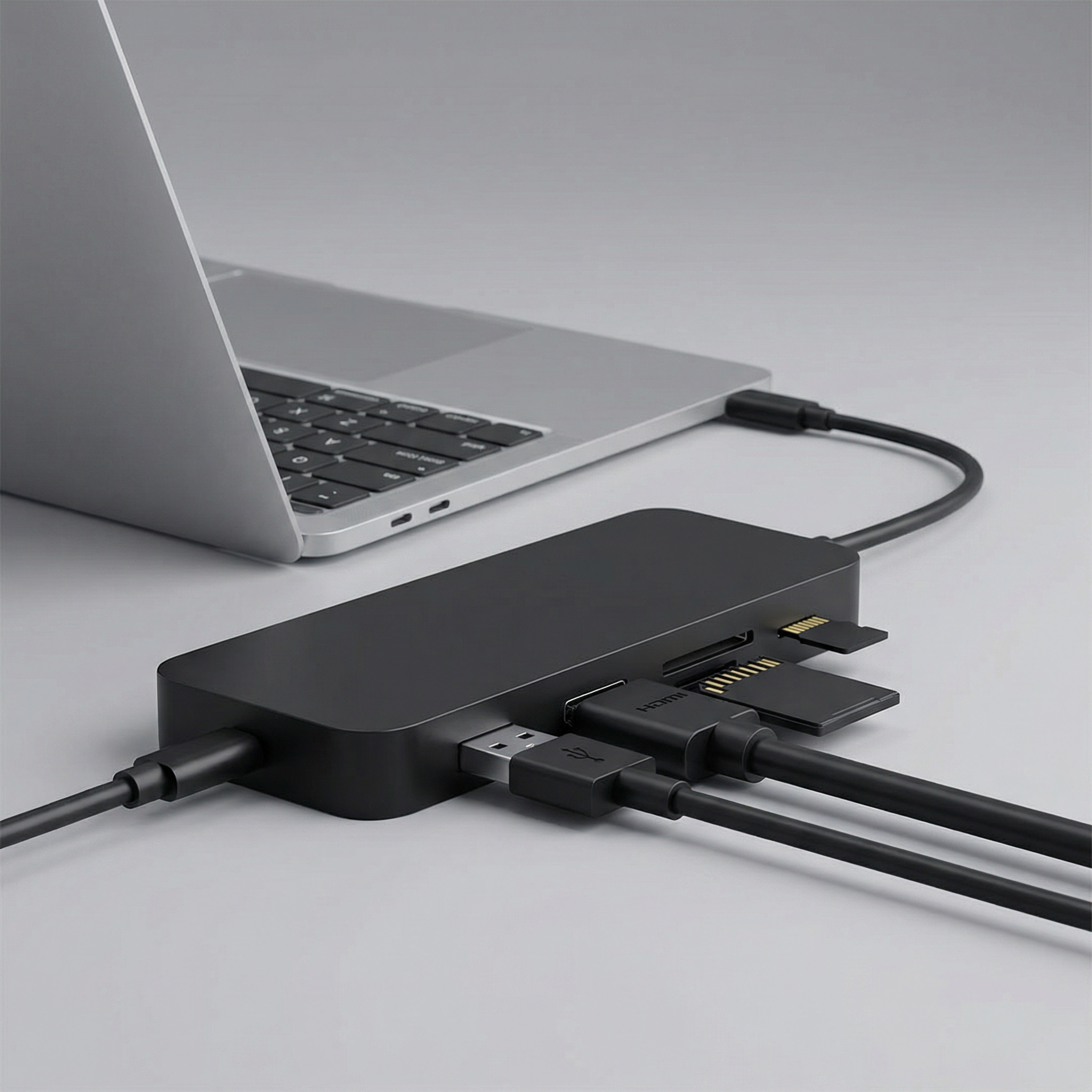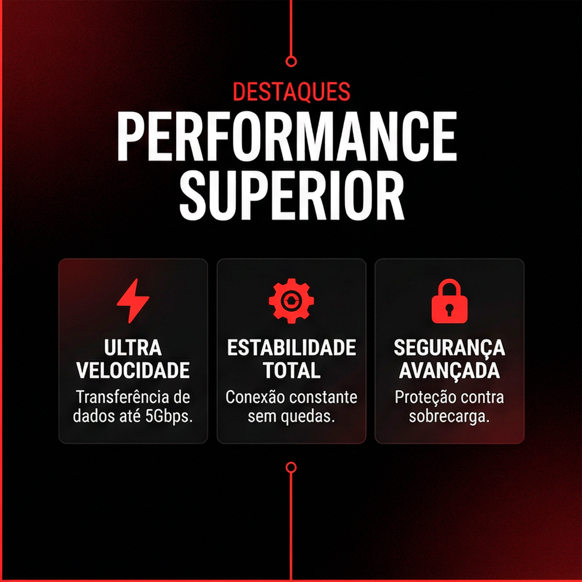 O Hub USB 7 em 1 foi desenvolvido para expandir a conectividade com máxima eficiência e desempenho. Compacto e elegante, oferece uma solução completa para quem precisa de mais portas e alta velocidade de transferência em um único dispositivo. Com suporte a transferência de dados de até 5Gbps, garante agilidade no envio de arquivos e estabilidade na conexão, evitando quedas ou interrupções.
